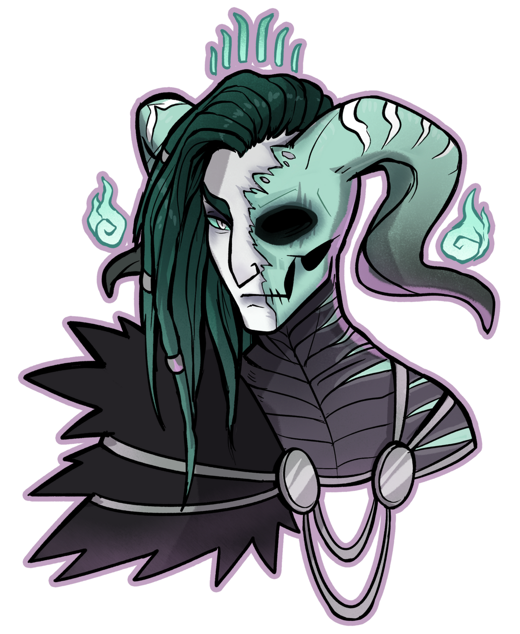 She is a being of immense power, ruling over the realm of Heheim. Can shape-shift her skeletal arm into a powerful sword & summon spectral weapons out of thin air.